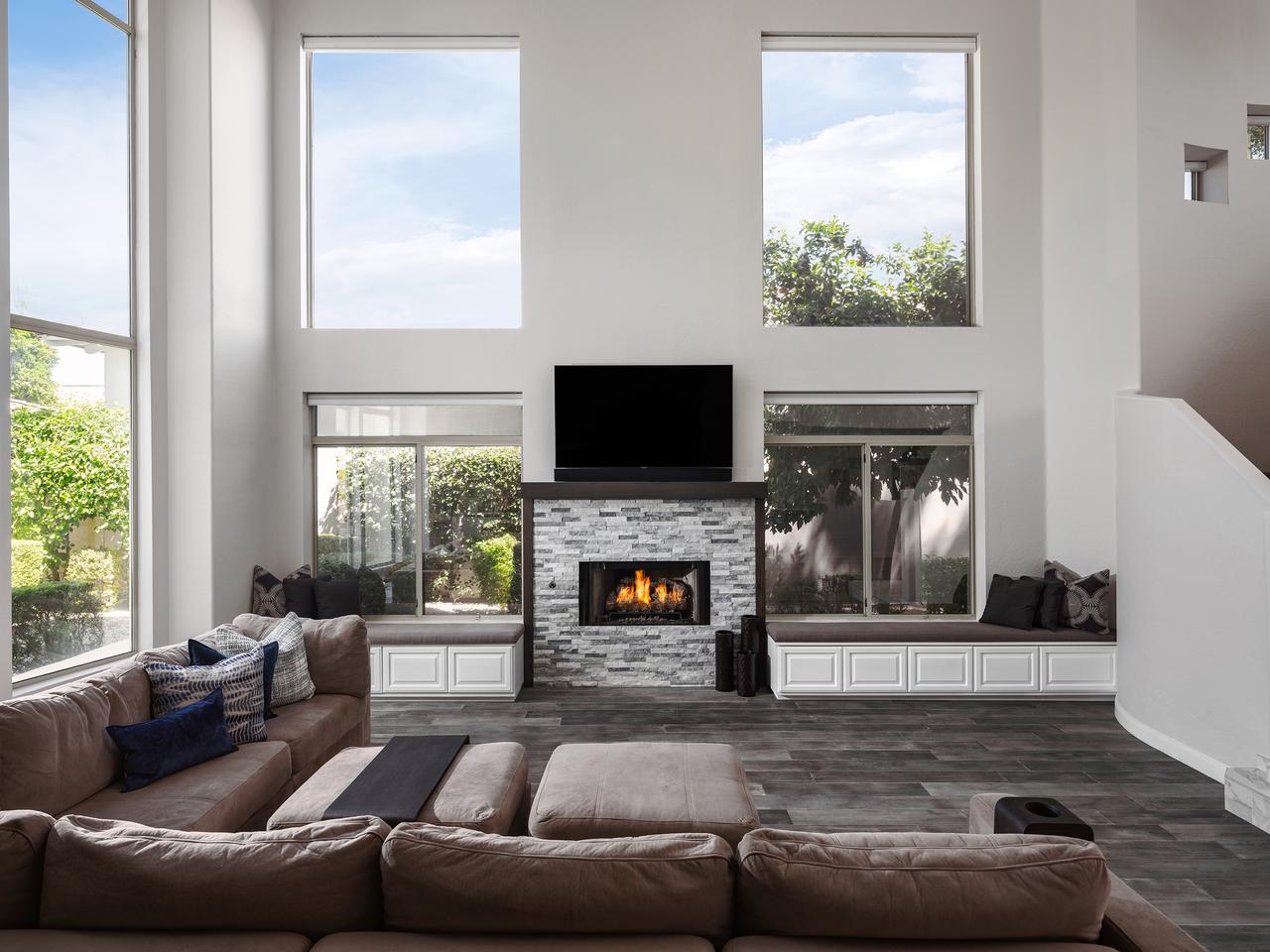 Located in North Scottsdale, the existing home's interior was dated and rooms were closed off from one another. The client wanted a more open and connected floor plan with clean, elevated finishes. The kitchen and den were opened up to the main room using a series of wood beams that we left exposed. The new open space allowed the natural light to flood through more of the home. We used new LED lighting throughout the house, new high efficiency mechanical units, and a smart hub to control all of the electronics, air conditioning and lighting from their iPads.